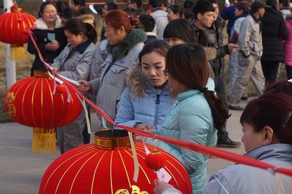 為弘揚(yáng)民族文化,讓職工們體驗(yàn)元宵節(jié)猜燈謎的傳統(tǒng)習(xí)俗,豐富企業(yè)文化生活,營造喜慶、祥和的節(jié)日氛圍,公司于2015年3月3日(正月十四)下午舉辦了河南萬杰第四屆“慶元宵、猜燈謎”活動(dòng)。本次活動(dòng)由公司行政部、總經(jīng)辦聯(lián)合舉辦,并得到了各部門職工的大力支持。 本次“猜燈謎”活動(dòng),謎面科學(xué)而通俗,其中涵蓋著字謎、成語、腦筋急轉(zhuǎn)彎及公司戰(zhàn)略規(guī)劃問答等內(nèi)容,生動(dòng)而活潑,面廣而量大。 下午16:30,萬杰全體家人準(zhǔn)時(shí)來到操場,在行政部經(jīng)理劉志軍對本次“慶元宵 猜燈謎”的活動(dòng)規(guī)則進(jìn)行說明后,河南萬杰第四屆“慶元宵 猜燈謎”活動(dòng)正式開始。 zui為吸引職工眼球的是公司操場內(nèi)一排排的紅燈籠及燈籠上貼著燈謎的各色紙條。微風(fēng)吹來,謎面隨風(fēng)起舞,職工們穿梭其間,流連忘返。謎面前,一雙雙欣喜而激動(dòng)的眼睛閃爍著智慧的光芒。大家積極參與,三三兩兩聚在謎題下細(xì)心斟酌、認(rèn)真思索,現(xiàn)場不時(shí)傳出猜中謎底后欣喜的歡呼聲,場面熱鬧非凡,處處洋溢著濃濃的文化氣息。有的同事在燈謎前冥思苦想,也有同事想到答案豁然開朗的,還有些同事因久久想不到答案而聚集在一起共同探討……,盡管今年燈謎的難度較往年大得多,但仍擋不住大家積極開動(dòng)腦筋的激情與智慧,zui終通過大家的努力絕大部分燈謎都被猜中。職工們猜到燈謎時(shí)的興奮與領(lǐng)獎(jiǎng)時(shí)的喜悅,把活動(dòng)的氣氛推向高潮。 zui后,計(jì)分員根據(jù)猜中謎底的數(shù)量統(tǒng)計(jì)出前十名人員,公司領(lǐng)導(dǎo)分別為每位獲獎(jiǎng)人員贈(zèng)送了一對大紅燈籠,給首個(gè)猜出答案的人和猜出總數(shù)zui高的家人獎(jiǎng)勵(lì)萬杰紀(jì)念茶杯一個(gè),活動(dòng)在歡聲笑語中結(jié)束! 在職工的內(nèi)心深處,公司每年舉行“鬧元宵,猜燈謎”活動(dòng)儼然成為了萬杰的習(xí)俗之一。每當(dāng)元宵前夕,大家都期盼著這項(xiàng)熱熱鬧鬧的活動(dòng),因?yàn)樗龓Ыo我們的不僅僅是獎(jiǎng)品,還有歡聲笑語。小小的燈謎讓大家之間的距離變得更近了,小小的燈謎讓萬杰“以人為本,人以孝為根”的企業(yè)文化深入人心。 “慶元宵